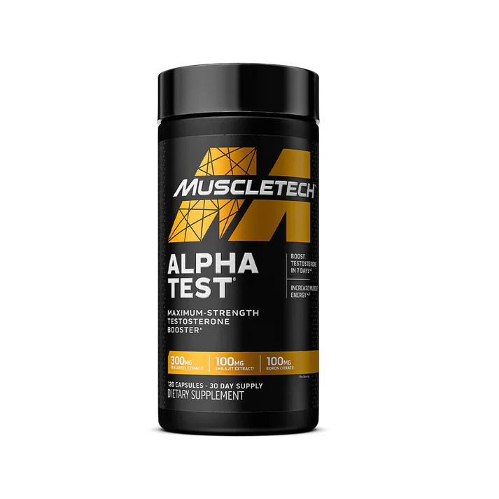 BOOSTER DE TESTOSTÉRONE POUR HOMME – MuscleTech AlphaTest est conçu pour les amateurs de fitness sérieux et les athlètes axés sur la maximisation de la force et des résultats. AlphaTest soutient la production de testostérone et aide à maintenir un rapport testostérone/cortisol maximal