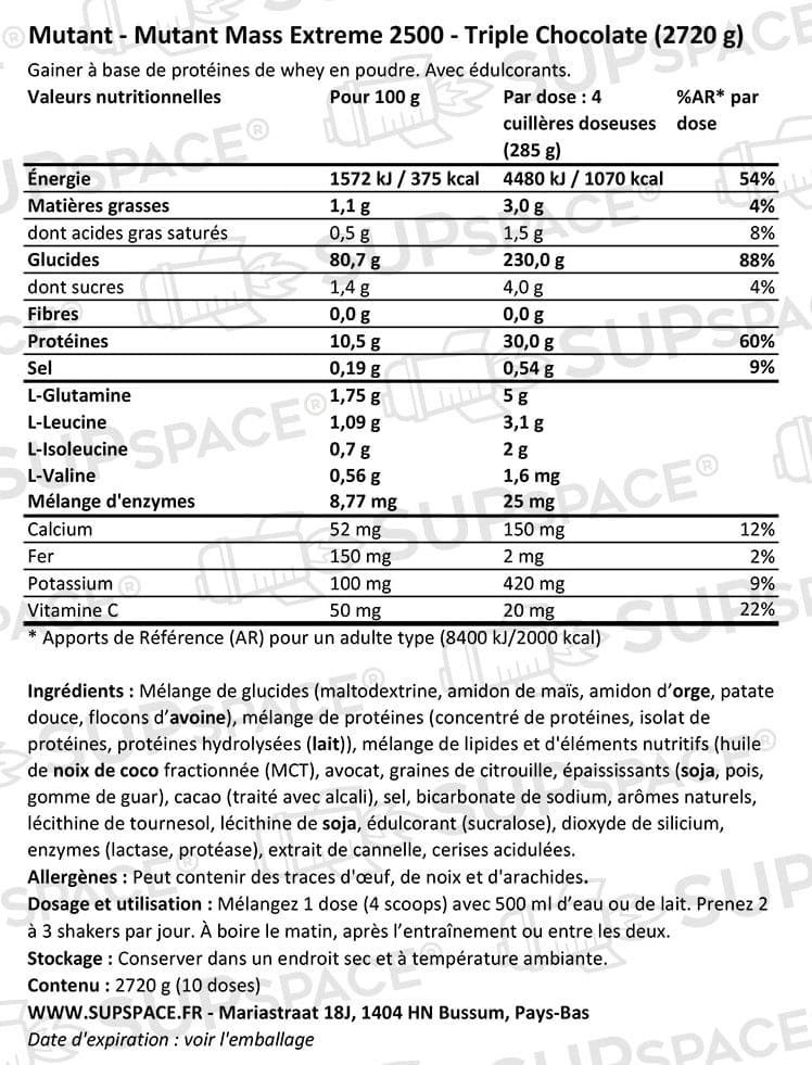 Vous êtes entrain de voir Mutant Mass Extreme 2500 Triple Chocolate (2720 g) 45,000 CFA