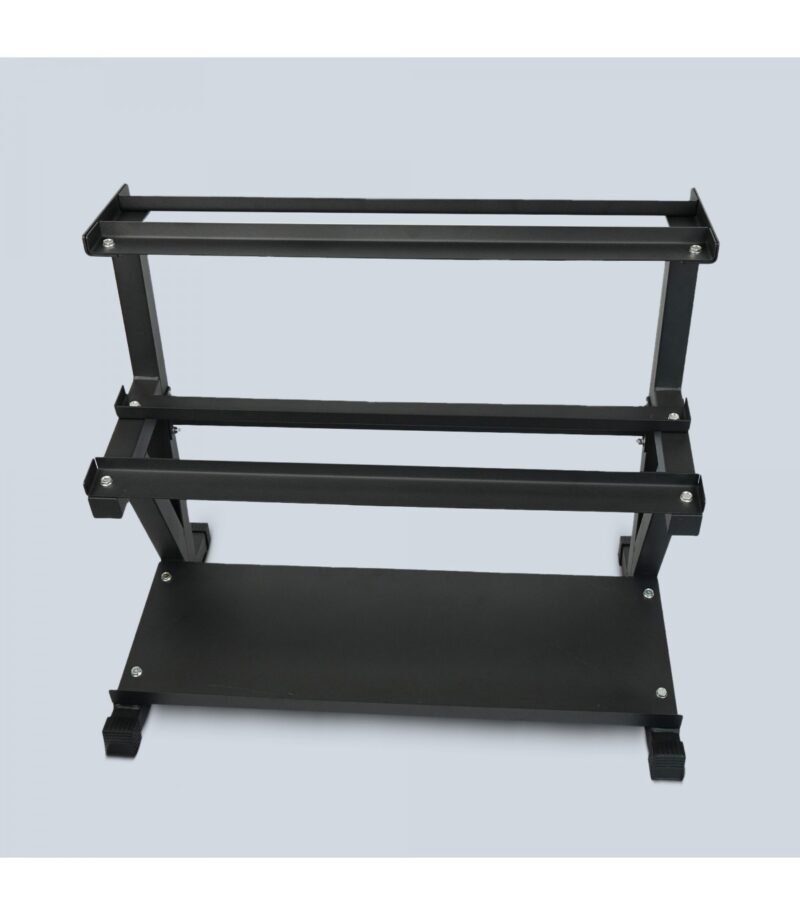 Les rangements sur plusieurs niveaux permettent un accès facile et rapide à vos haltères, améliorant ainsi l’efficacité de vos séances d’entraînement.