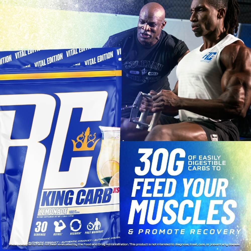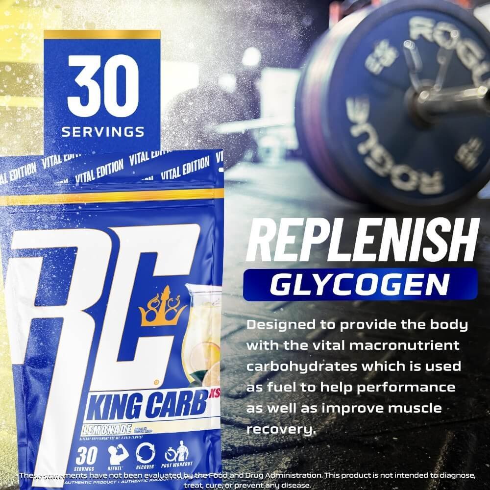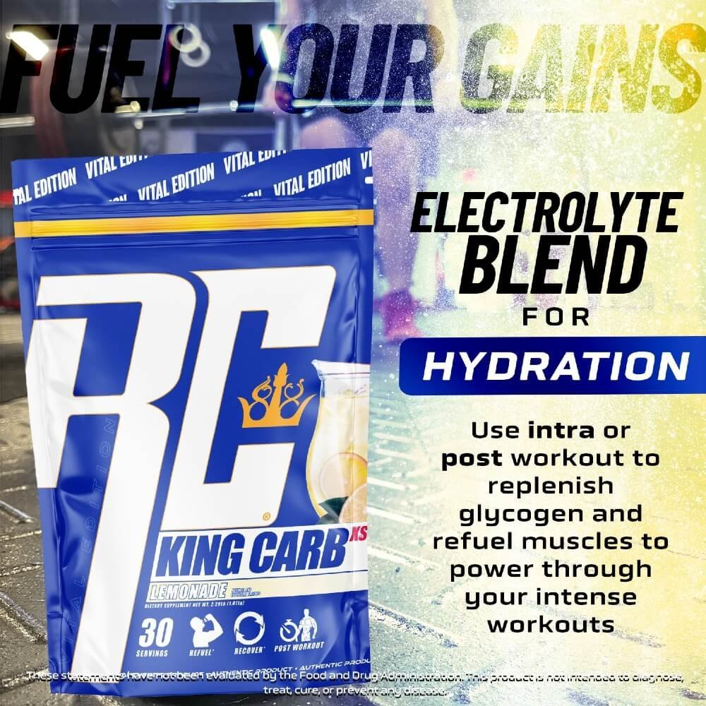 King Carb est un produit de reconstitution du glycogène et de récupération qui contient du maltodextrine ainsi que du dextrose, comparable au glucose, la forme de glucides simples à absorption la plus rapide disponible.