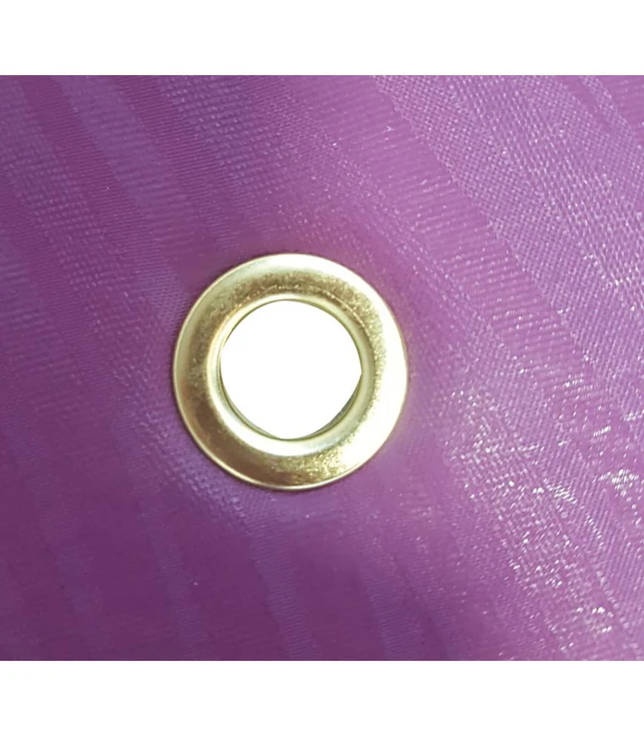 Design, ce tapis est doté d’une face anti-dérapante (grise) et d’une autre face en tissu très résistant (violette). Résiste aux déchirures. Avec deux oeillets métal.