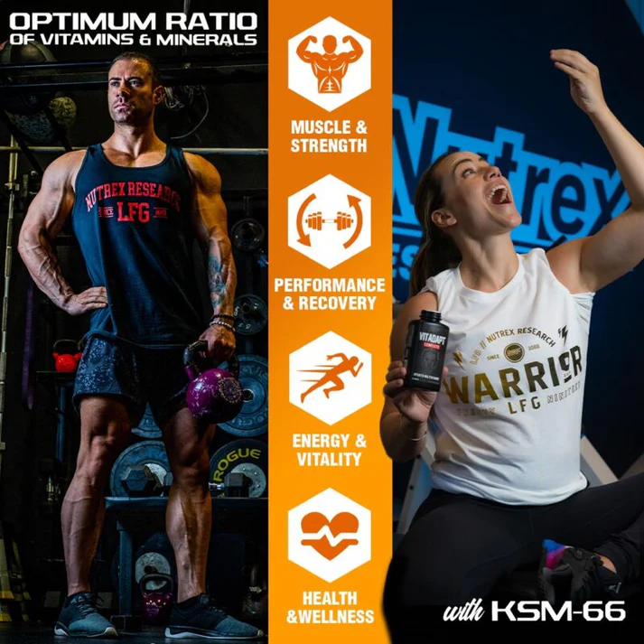 Muscles & Force Performance & Récupération Énergie & Vitalité Santé & Bien-être La multivitamine avancée et adaptogène pour les athlètes sérieux. La formule tout-en-un de VITADAPT répond parfaitement aux besoins des athlètes soumis à une forte demande physique. Des quantités efficaces de vitamines, de minéraux et d’adaptogènes protègent votre corps du stress et vous préparent à devenir plus fort.